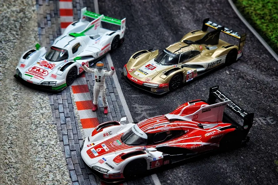With Porsche, a truly big name is now leaving the series for the first time in years. At the end of September, the WEC celebrated its 100th race. Porsche has won at least one class victory 71 times, with 21 overall victories to its name. In 2024, AndrΓ© Lotterer, Kevin Γstre and Laurens Vanthoor also won the world championship title. In keeping with this, Sparky released the 2024 version of the Porsche 963 this year with various start numbers, including number 6 from the aforementioned world champion as a PENSKE Motorsport vehicle. Sparky released the FAT Turbo Team PROTON this year as well. MiniGT and Hot Wheels Elite64 will also be launching the Porsche 963 by the end of 2025 probably.